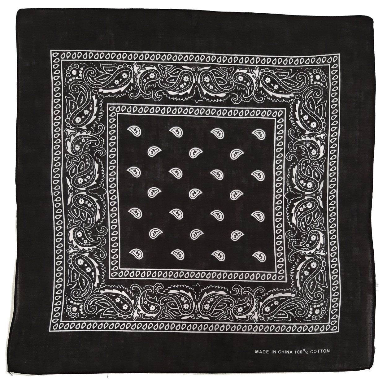 Black bandanas with a paisley print.